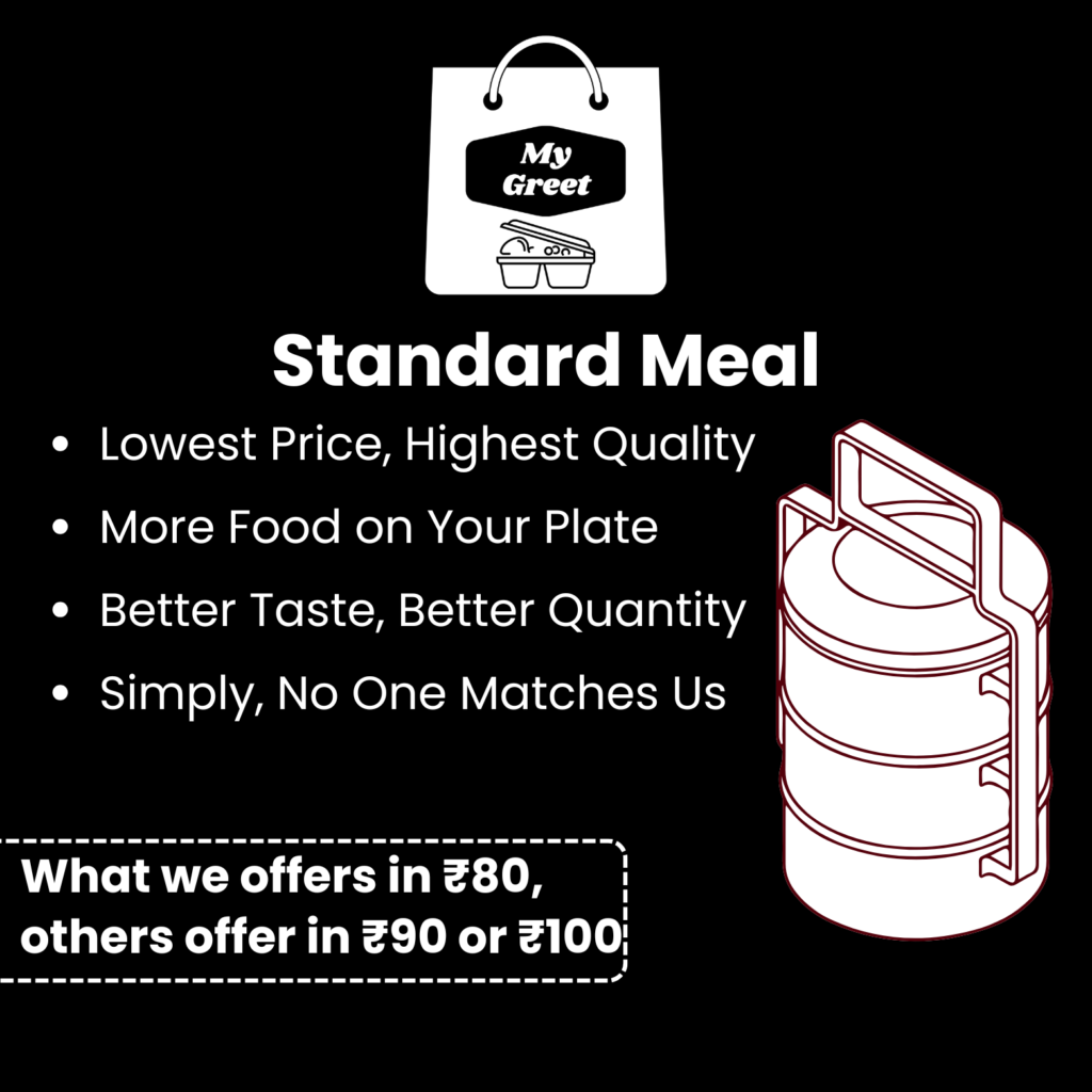 • अगर आप कभी-कभी टिफ़िन लेते हैं और भुगतान पहले करते हैं, तो शुल्क ₹70 / ₹80 प्रति टिफ़िन होगा।
